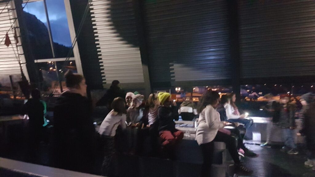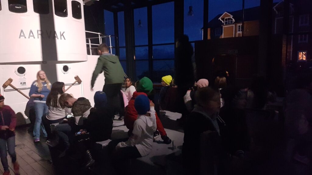 Ishavsskuta Aarvak, i mørket. Quiz og andre aktivetetar.